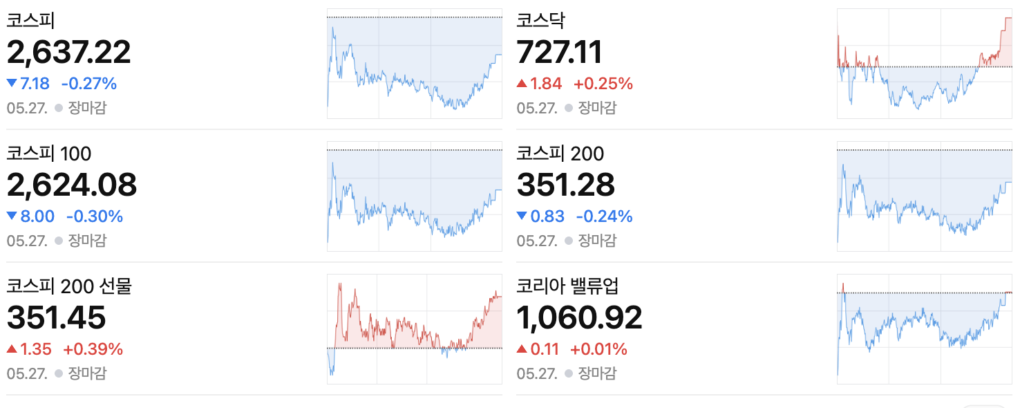 5월 27일(현지 시각) 뉴욕 증시 급등: 다우지수 +1.78%, 나스닥 +2.47% 등 위험자산 선호 심리가 강하게 나타났다.
