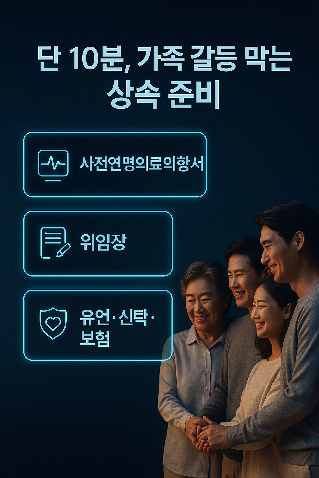 갑작스러운 죽음이나 의식 손상은 누구에게나 닥칠 수 있는 현실입니다. 미리 상속 준비 방법을 고민하고 행동하는 것은, 나에게도 혹시 모를 불운이 찾아올 수 있음을 인정하고, 사랑하는 가족을 위해 따뜻한 배려를 남기는 일입니다. 조금 겸연쩍거나 어색해도, 지금부터 가족과 충분히 대화를 나누어 보세요. 그 작은 대화가 먼 훗날 가족의 큰 갈등을 막는 소중한 선물이 될 것입니다.
