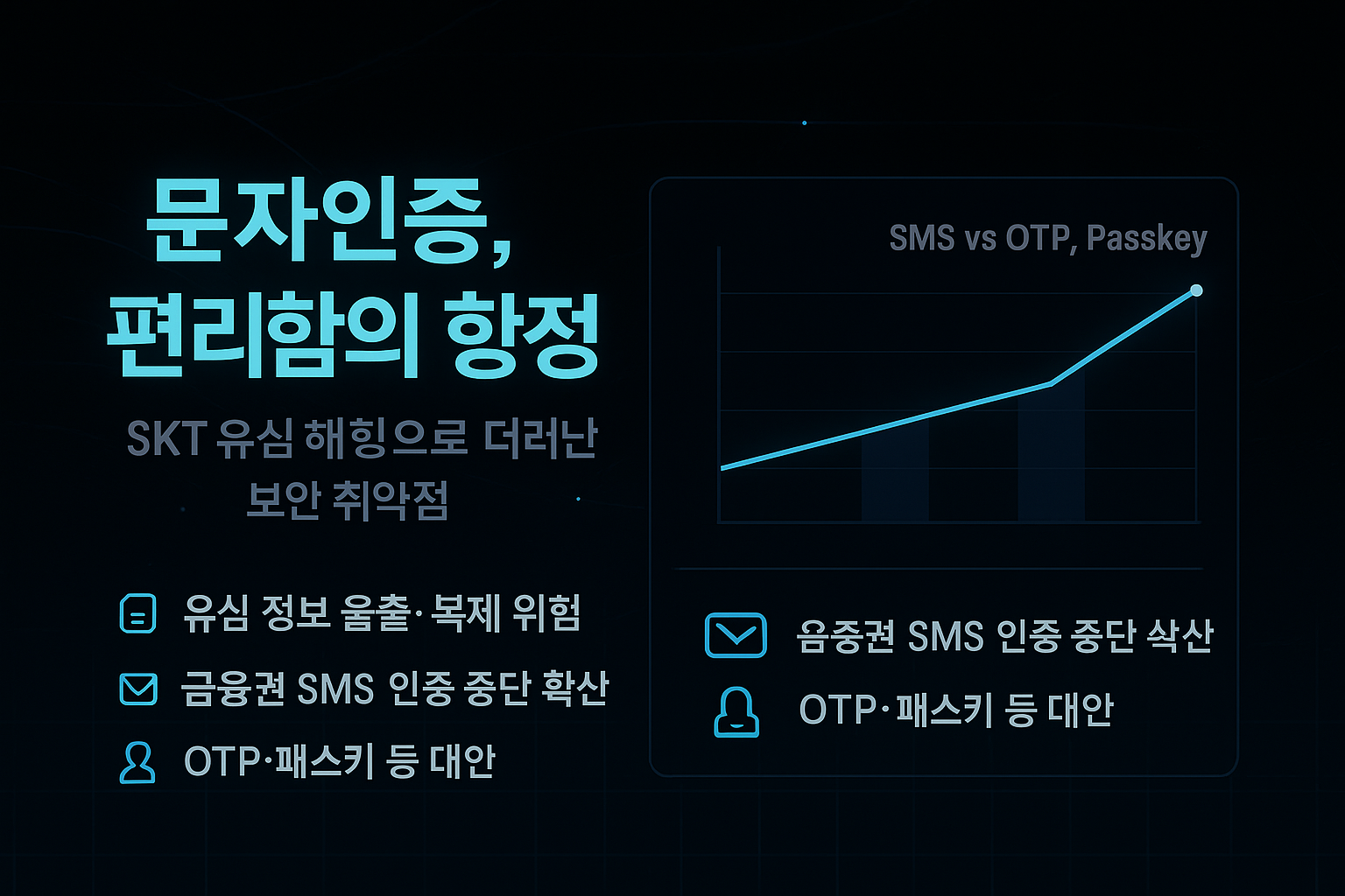 본인의 개인정보와 자산을 보호하기 위해서는 가능한 한 OTP 앱, 생체인증, 패스키 등 더 안전한 인증 방식을 활용하시길 권장합니다. 정부와 기업들도 보안 가이드라인을 강화하고, 사용자들에게 더 안전한 인증 방식을 제공하는 노력이 필요한 시점입니다.