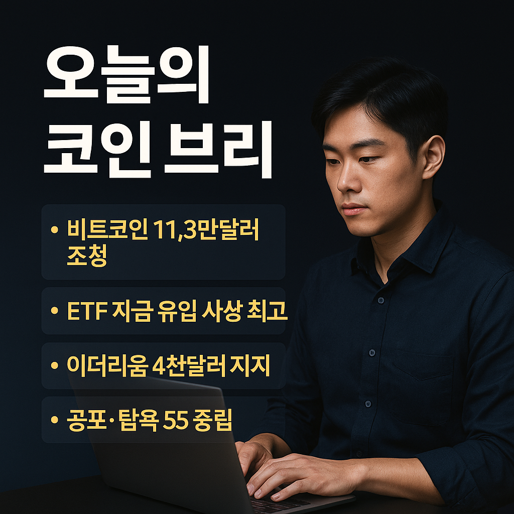 온체인 데이터와 파생상품 시장 지표를 살펴보면, 투자자들의 심리 상태와 포지션 동향을 좀 더 입체적으로 이해할 수 있습니다. 우선 **공포·탐욕 지수(Fear & Greed Index)**는 현재 55 전후의 '탐욕(Greed)' 단계를 가리키고 있습니다. 불과 며칠 전까지만 해도 60대 중후반으로 높은 탐욕 수준이었으나, 이번 조정으로 지수가 다소 하락하며 투자자들의 심리가 약간 위축된 모습을 보여줍니다. 그럼에도 50을 웃돌고 있는 수치는 시장 참가자들이 여전히 낙관적 기대를 유지하고 있음을 시사하며, 극단적 공포 단계와는 거리가 먼 상황입니다.