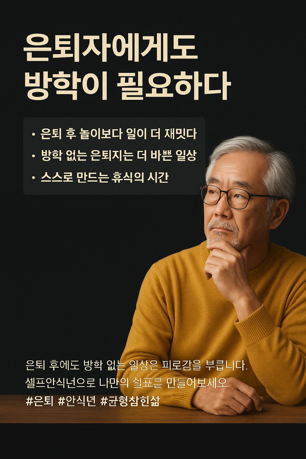 현역 시절, 많은 사람들이 은퇴 후 생활을 꿈꿉니다. "은퇴하면 실컷 놀아야지, 여행도 다니고 취미생활도 즐겨야지" 하면서 말이죠. 저 역시 그랬습니다. 평생 일만 하다가 노는 게 힘들다고 하소연하는 은퇴자들을 보면서, 나는 다를 거라고 자신했었죠.