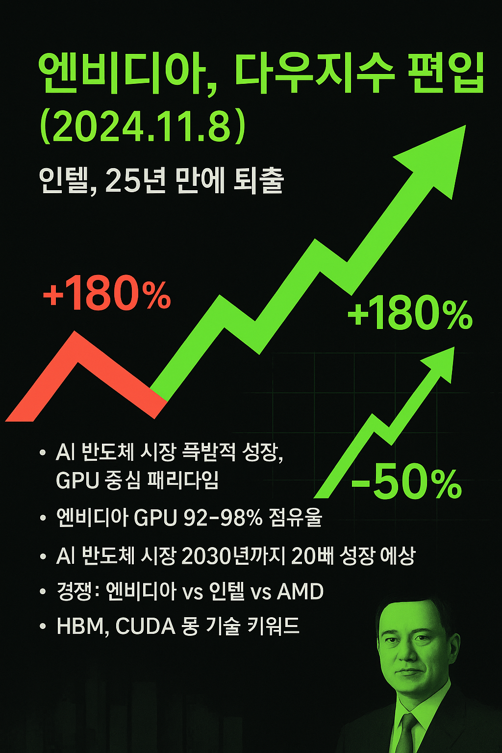 엔비디아다우지수편입, AI반도체산업, 엔비디아, 인텔, AMD, GPU시장, HBM메모리, 기술패러다임전환, 반도체투자, AI칩경쟁
