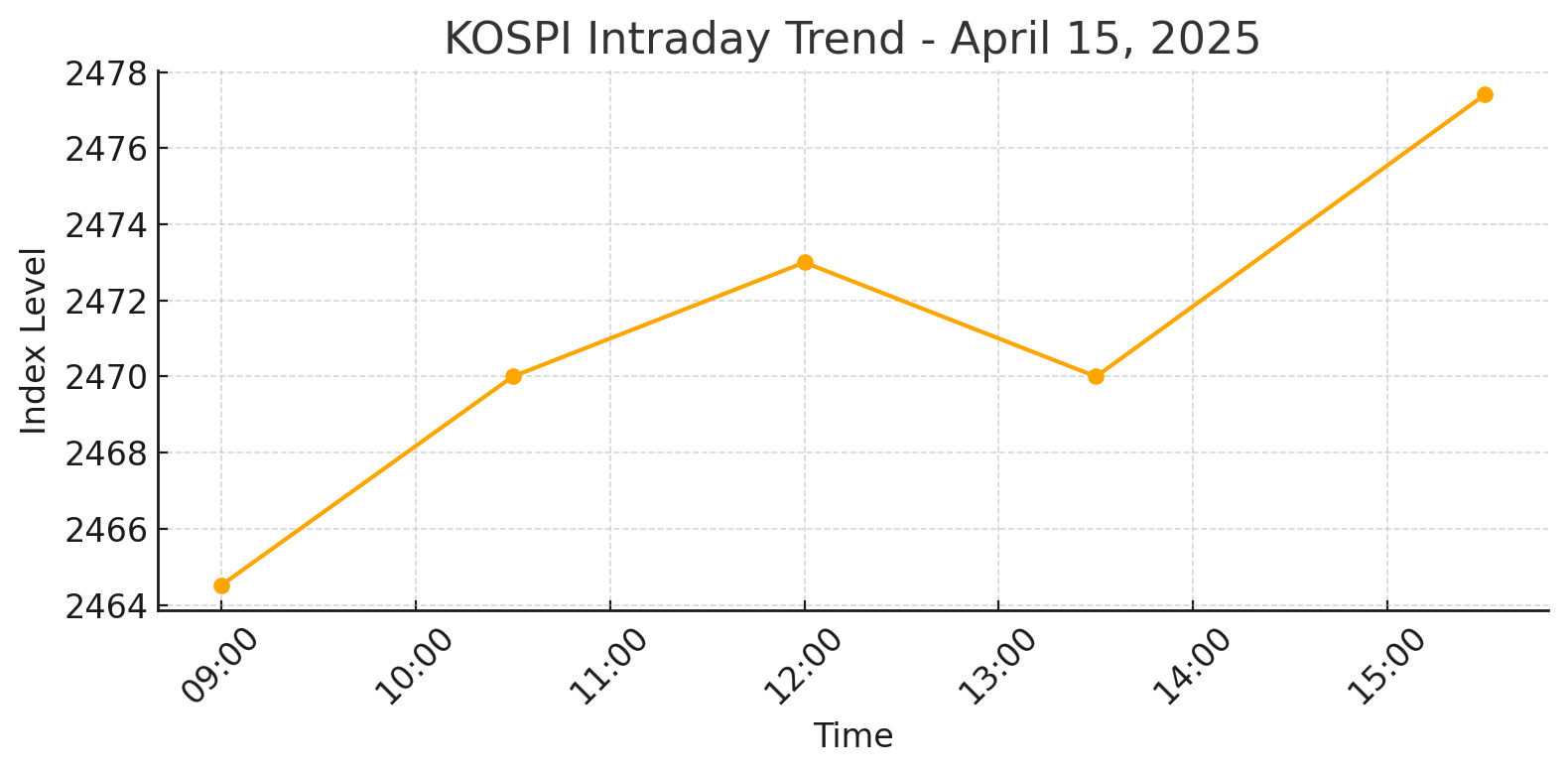 전일 미국 증시의 훈풍과 트럼프 대통령의 관세 완화 시사로 4월 15일 코스피와 코스닥은 장 초반부터 상승 흐름을 탔습니다. 코스피는 전일 대비 +0.35% 오른 2,464.51로 출발한 후 장중 내내 우호적 분위기를 이어갔고, 코스닥 역시 소폭 상승 출발했습니다. 특히 자동차주와 기술주를 중심으로 매수세가 유입되며 이틀 연속 지수 상승을 견인했는데요. 하루 동안의 주요 뉴스와 매수추천점수 변동 요인을 시간대별로 정리해드립니다.