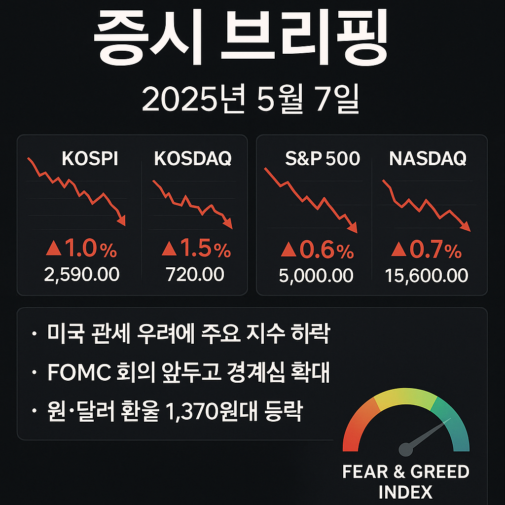 2025년 5월 6일, 7일 증시 브리핑: 관세 전쟁·Fed 회의 앞둔 출렁이는 시장