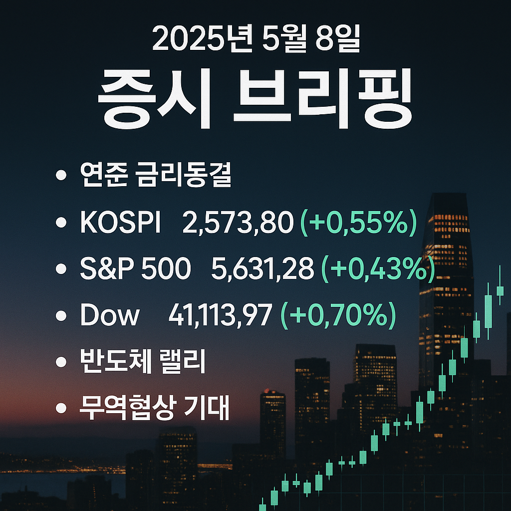 | 2025년 5월 8일, 9일 증시 브리핑: 금리 동결·무역합의 증시에 미칠 영향은? (7) | 2025.05.09 |