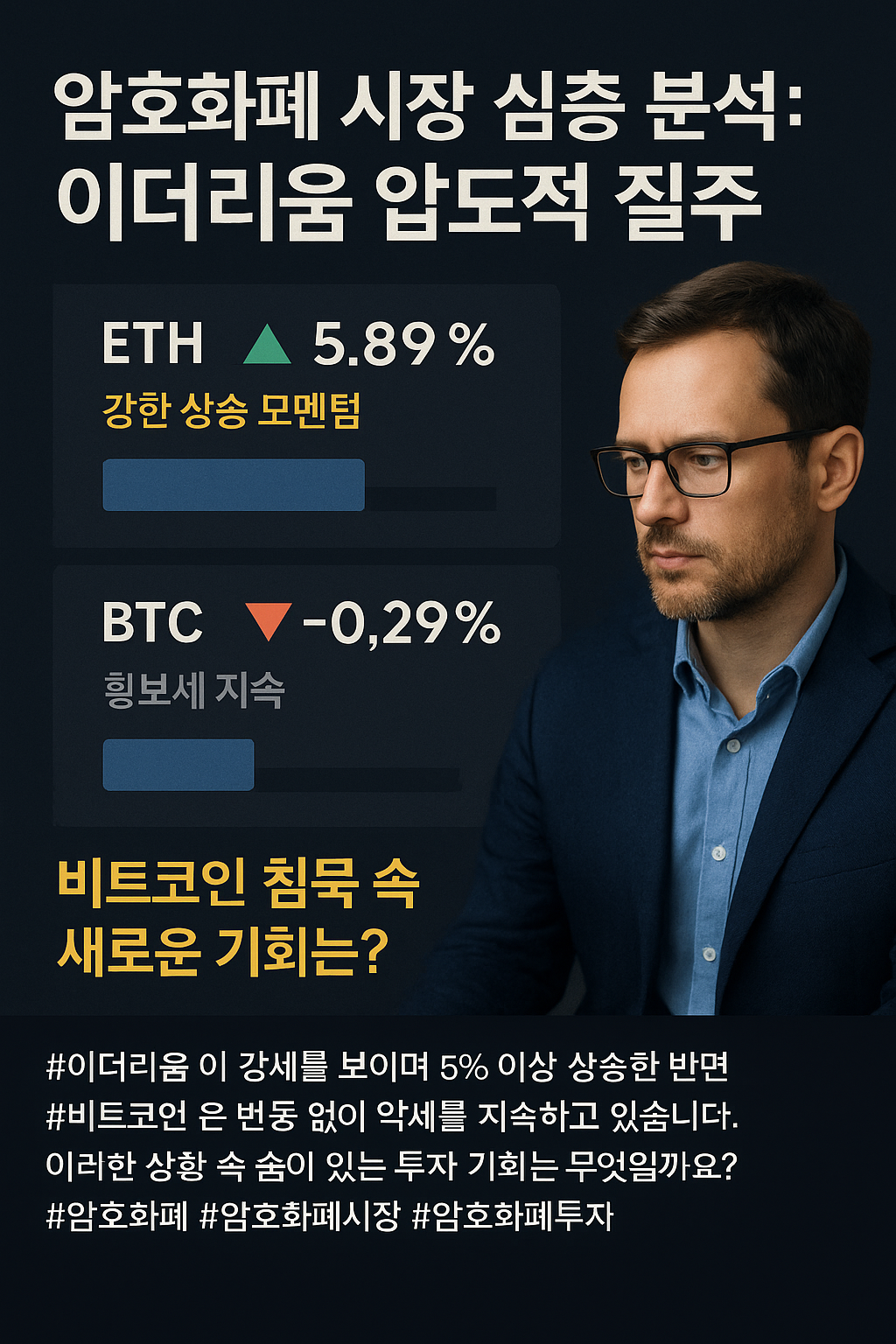 2025년 8월 10일 아침, 암호화폐 시장은 극명하게 갈린 두 개의 얼굴을 보여주고 있습니다. 한쪽에서는 이더리움(ETH)을 중심으로 한 스마트 컨트랙트 생태계가 폭발적인 에너지를 분출하며 새로운 역사를 써 내려가고 있는 반면, 다른 한쪽에서는 시장의 전통적인 대장주 비트코인(BTC)이 숨을 고르며 조용한 횡보를 이어가고 있습니다. 이는 단순한 가격 등락률의 차이를 넘어, 자본의 흐름, 투자자의 심리, 그리고 시장을 지배하는 서사가 근본적으로 분기하고 있음을 시사하는 중요한 신호입니다.