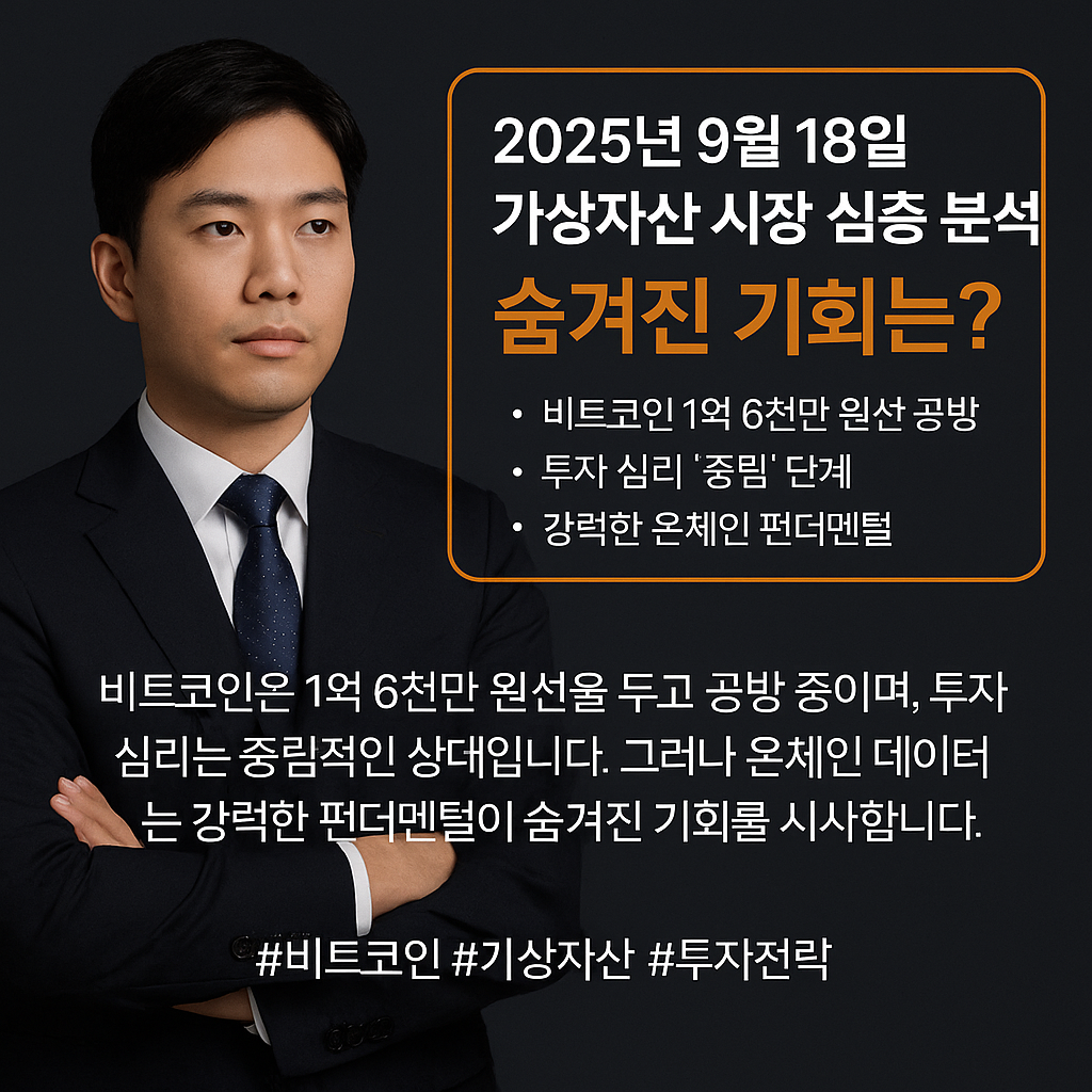 2025년 9월 18일 가상자산 시장 심층 분석: 비트코인 1억 6천만 원선 공방, 중립적 심리 속 숨겨진 기회는?