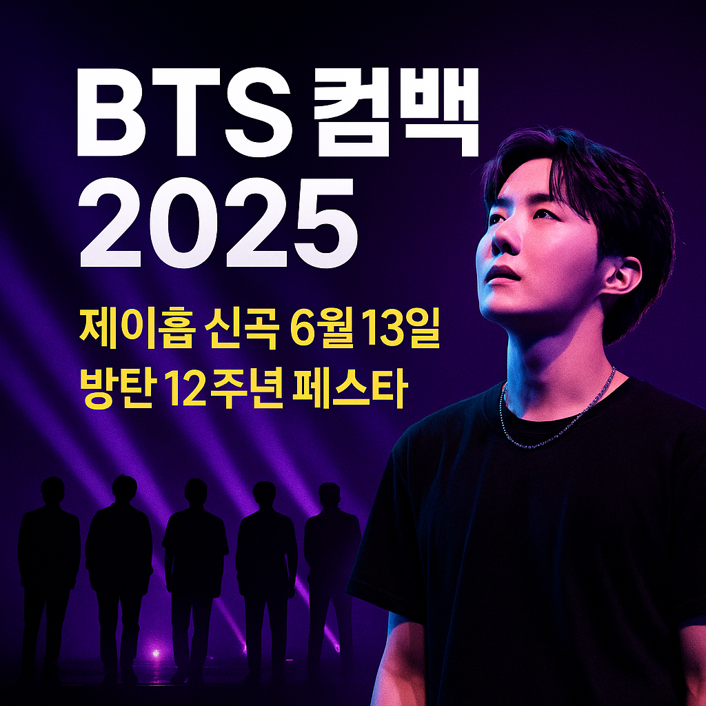 BTS 컴백 2025, 제이홉 신곡 발표부터 방탄소년단 12주년 페스타까지! 새 앨범, 굿즈, 챌린지 소식까지 놓치지 마세요. 완전체 귀환 예고로 아미들의 기대감이 최고조에 달했습니다.
