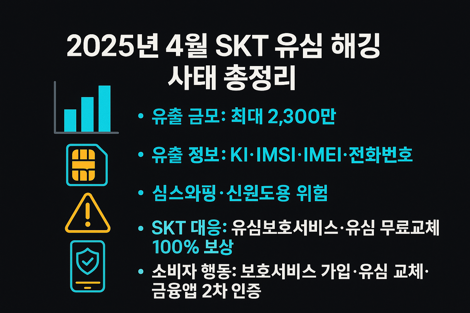 2025년 4월, SK텔레콤(SKT)의 대규모 유심 정보 해킹 사태가 발생했습니다. 국내 최대 통신사의 가입자 2,300만 명이 영향을 받을 수 있는 이번 사건은 단순한 개인정보 유출을 넘어 금융 피해로 이어질 수 있는 심각한 보안 사고입니다. 이 글에서는 SKT 유심 해킹의 전체 상황과 소비자가 취해야 할 구체적인 대응 방법을 상세히 알아보겠습니다.